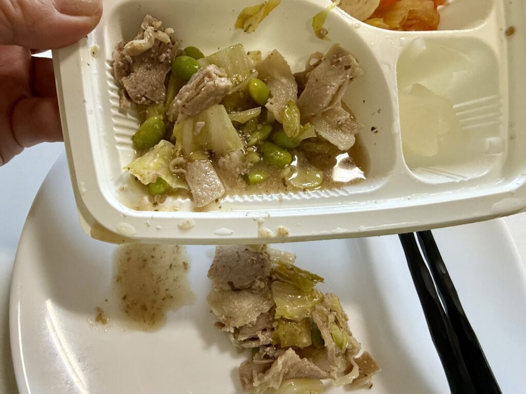 1. 豚肉とキャベツの梅味噌がけ弁当