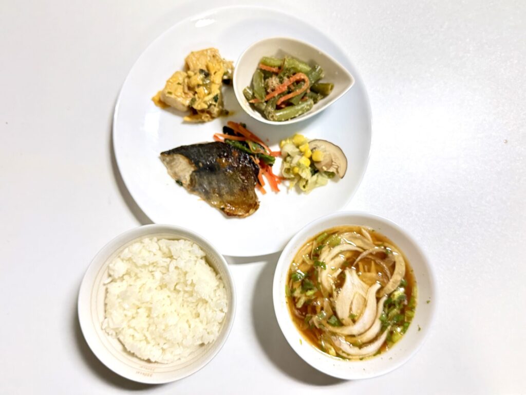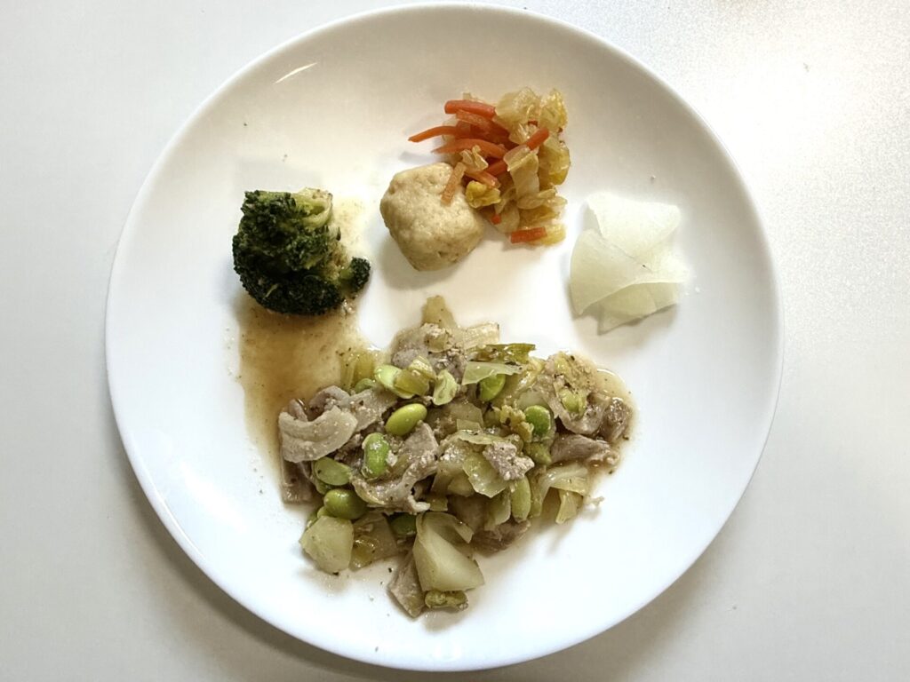 (メインメニュー以外のおかず名の記載がないので、食べた感じで命名しています)