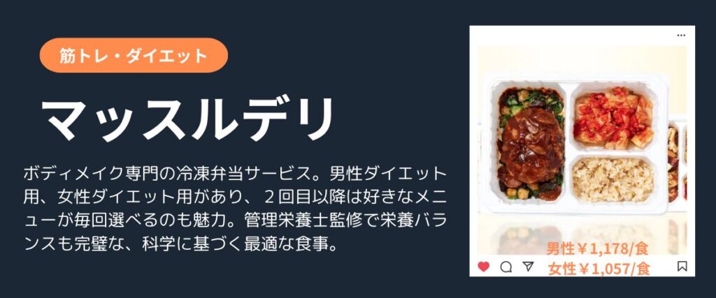 マッスルデリは、筋トレやダイエットを行っている方に向けた冷凍宅配弁当サービスです。